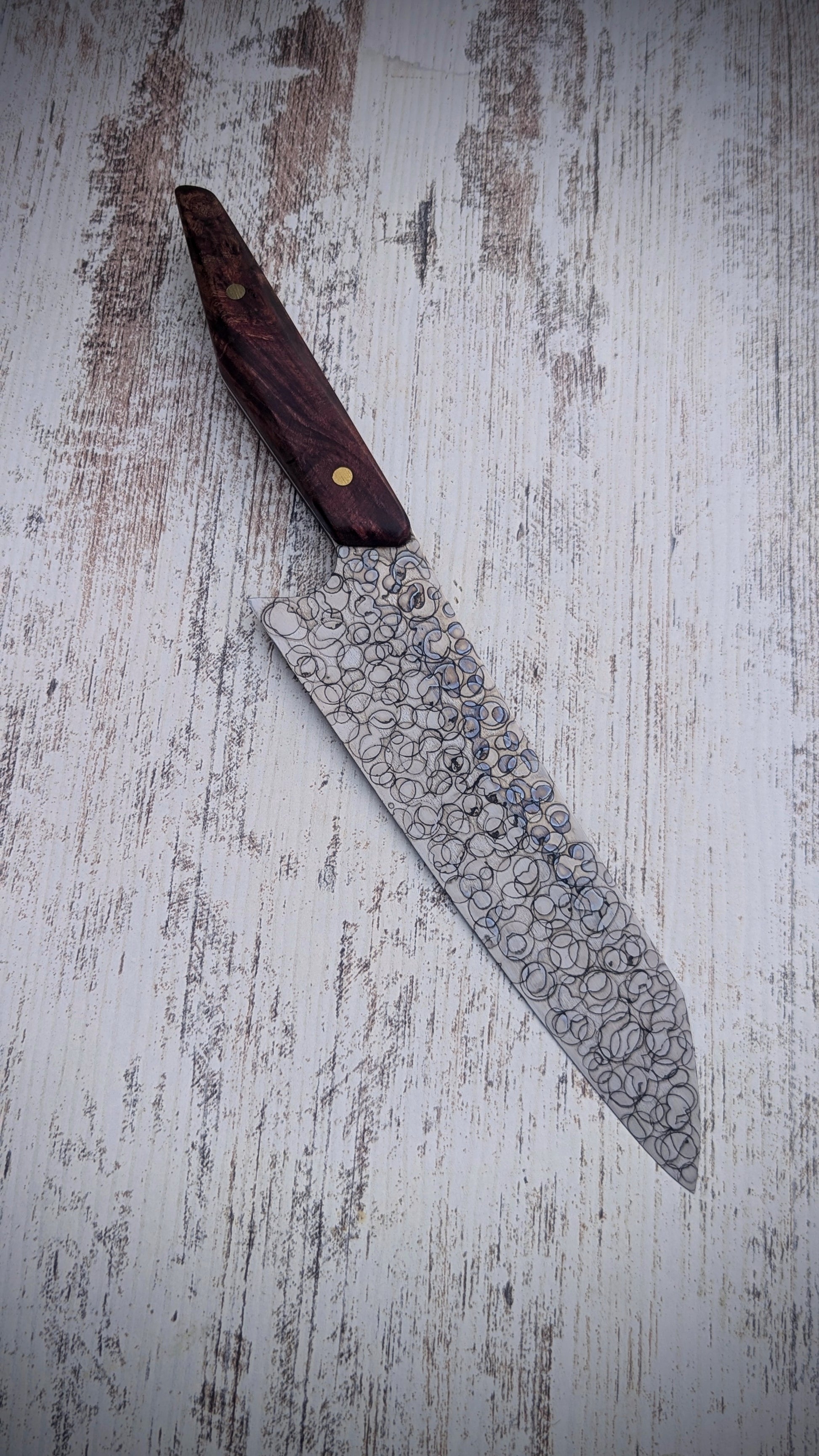 For all you culinary experts now is the time! I've got an absolutely gorgeous and one of a kind chef's knife available to whoever acts first! I know you all speak details though, so here are the specs.
