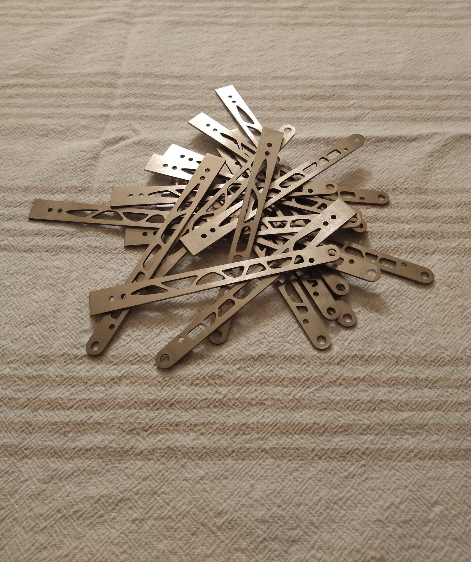 To make each liner, a g5 titanium laser cut blank has its surfaces cleaned up with a low grit belt. After doing this to each liner, all holes are reamed to achieve accurate fitment. Finally, all of the surfaces are finished with a 180 grit sanding belt. Each liner then goes through basic QC before shipping out!